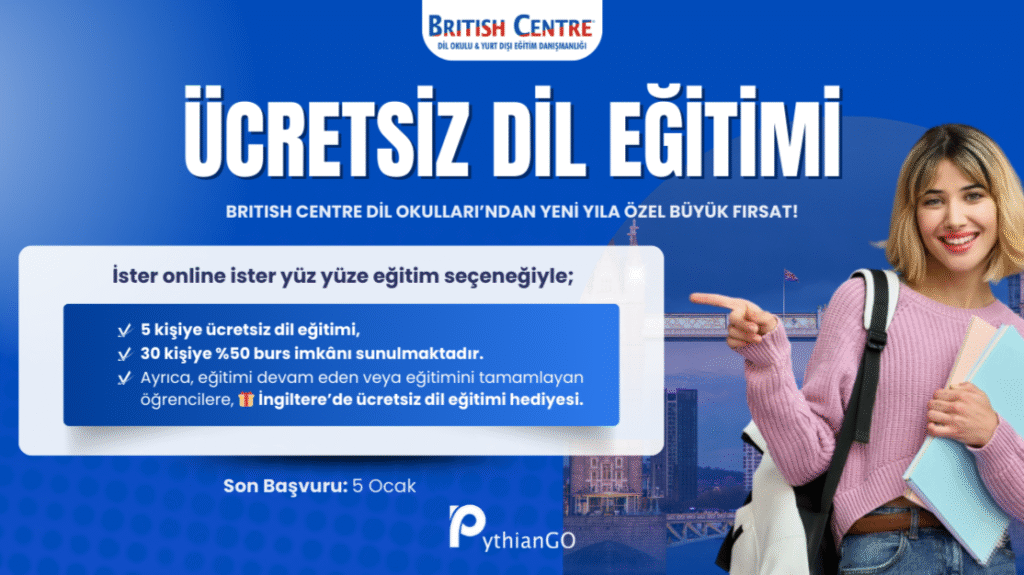 British Centre Dil Okulları × PythianGo iş birliğiyle yeni yıla özel büyük eğitim fırsatı seni bekliyor! Yabancı dil eğitimi..